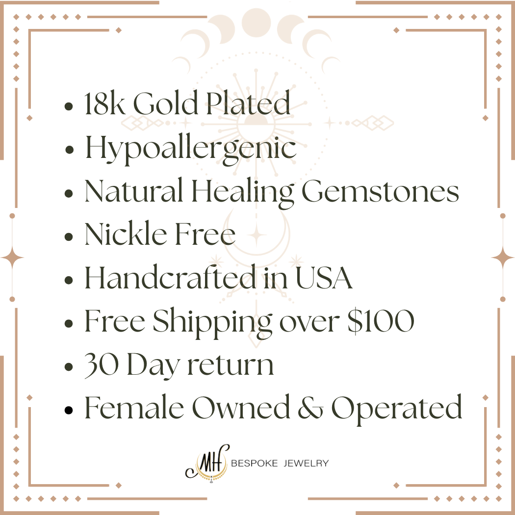 Each piece is handcrafted with natural gemstones and metals that carry their own subtle variations in color, shape, and tone. The piece that finds you is entirely your own — a reflection of nature’s artistry and your individuality.