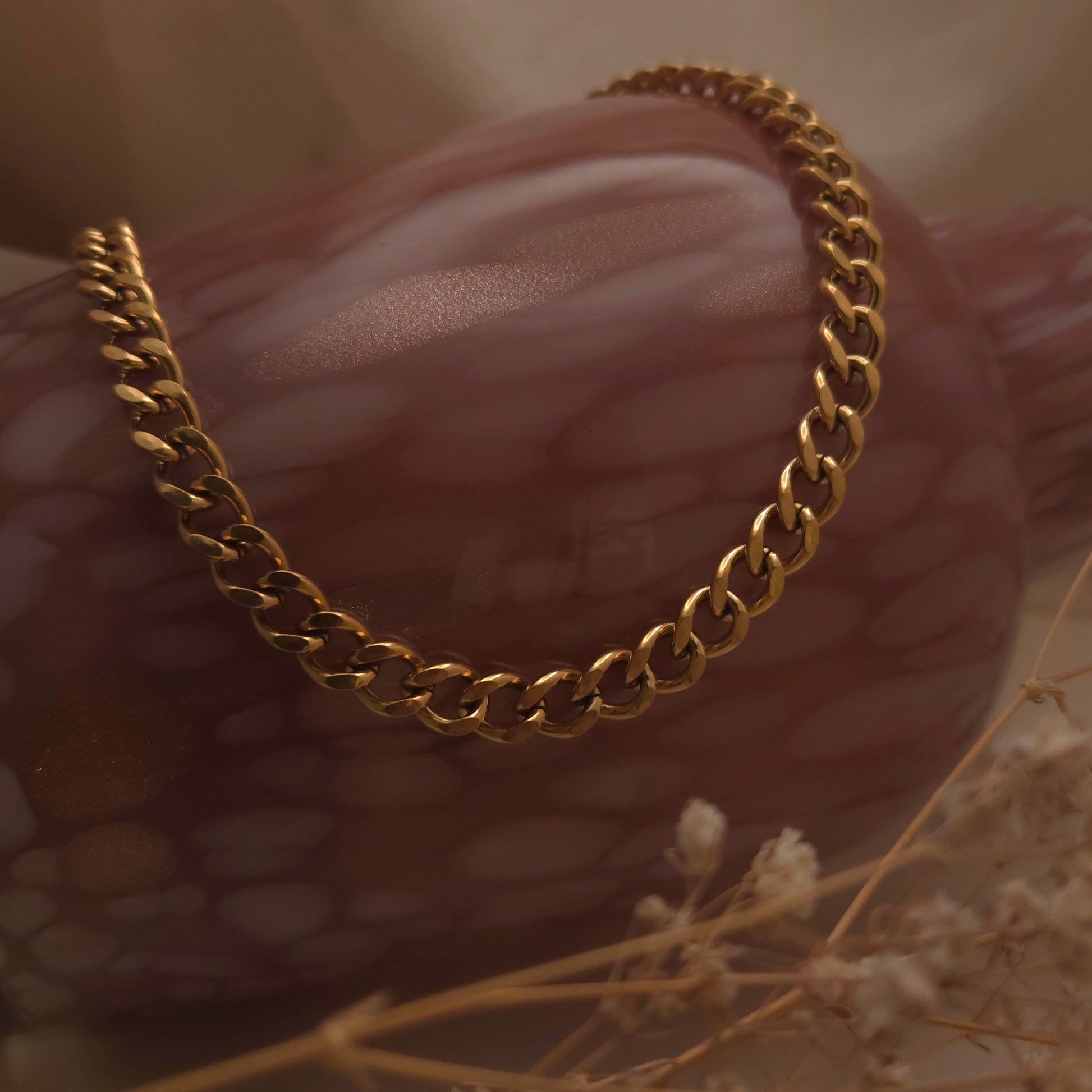 For the woman who commands a room without saying a word. The Vira is a bold, chunky curb chain that embodies unapologetic confidence and effortless sophistication. Whether worn solo as a statement or layered for a power-forward look, this classic piece speaks volumes — a timeless reflection of strength, style, and self-assurance.